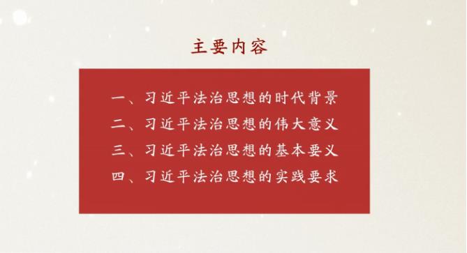 培訓中,全體干部員工集中收看了中國人民大學法學院教授、博士生導師馮玉軍主講的《以習近平法治思想為指導 全面推進依法治國》視頻。馮玉軍教授從習近平法治思想的時代背景、偉大意義、基本要義、實踐要求四個方面,詳細闡釋了習近平法治思想的深刻內涵。通過學習培訓,使與會人員進一步深化了對習近平法治思想的理解和認識,不斷增強了“四個意識”、堅定了“四個自信”、做到“兩個維護”,不斷把學習貫徹習近平法治思想引向深入。