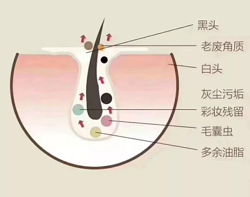 5、細(xì)菌在毛孔里大量繁殖,致使長痘、螨蟲、毛孔粗大甚至感染;