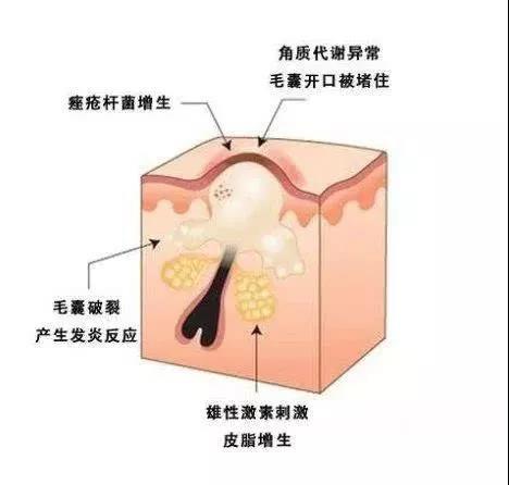雄激素分泌過(guò)多,會(huì)刺激皮脂腺增生和皮脂合成增多,還會(huì)使皮膚的毛囊孔或皮脂腺開(kāi)口的皮膚角質(zhì)化加重,經(jīng)毛孔分泌的油脂不容易排出等等,從而引發(fā)。